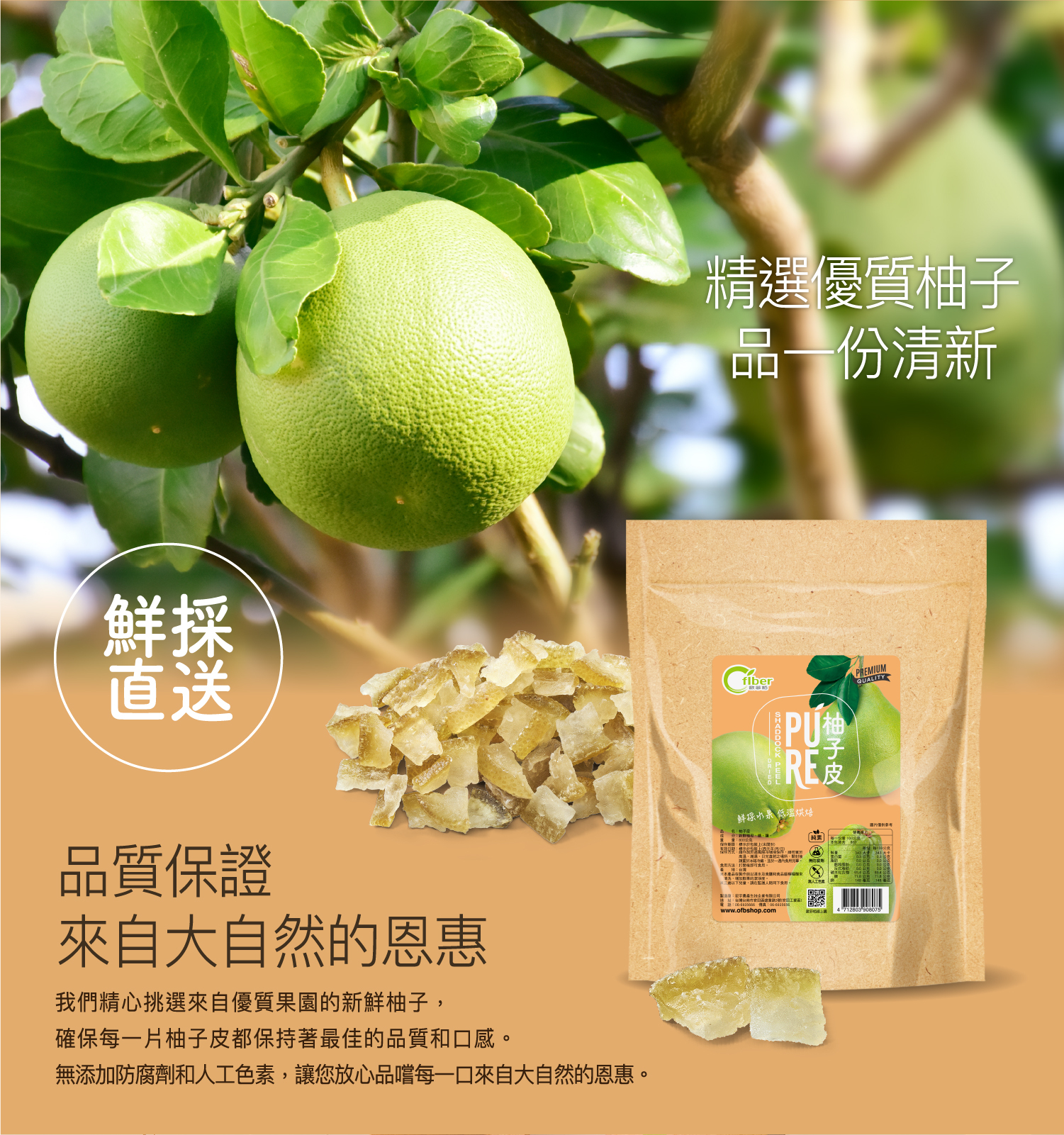 歐菲栢的柚子皮乾,選用新鮮柚子,經過低溫烘乾處理,保留了柚子皮的淡雅清香,去除了果皮的苦澀味。每一片柚子皮乾都散發微酸微甜的天然風味,口感香Q柔軟,猶如品嚐陽光與清新交織的美味饗宴。無硫化煙燻處理,並且純天然無添加,讓您可以放心享用,體驗大自然最原始的滋味。 選擇歐菲栢柚子皮乾,帶來清新每一刻,讓味蕾與健康同行。