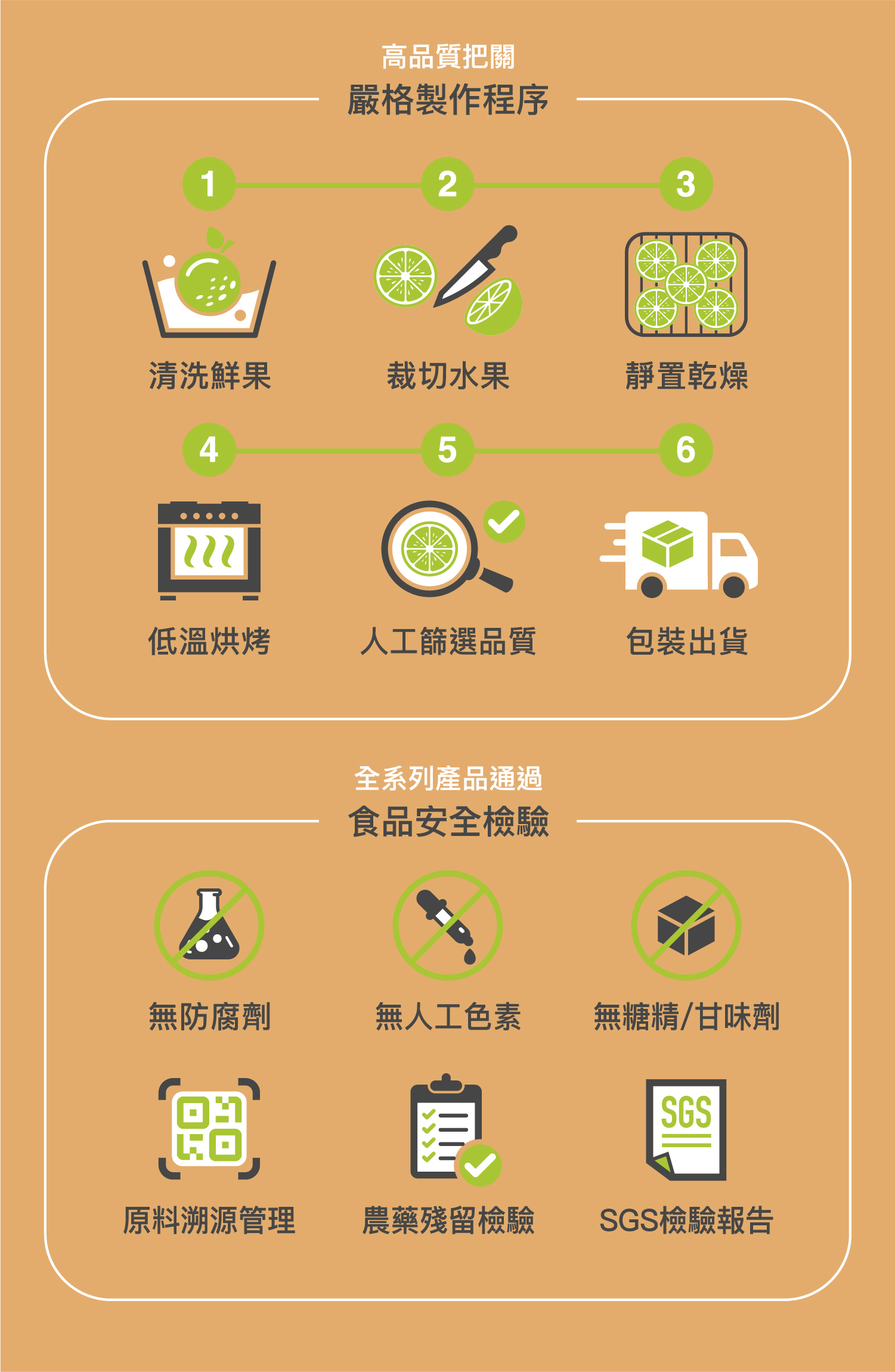 ※本產品在製作前,以清水及食鹽和食品級檸檬酸來清洗,增加鮮果的潔淨度。