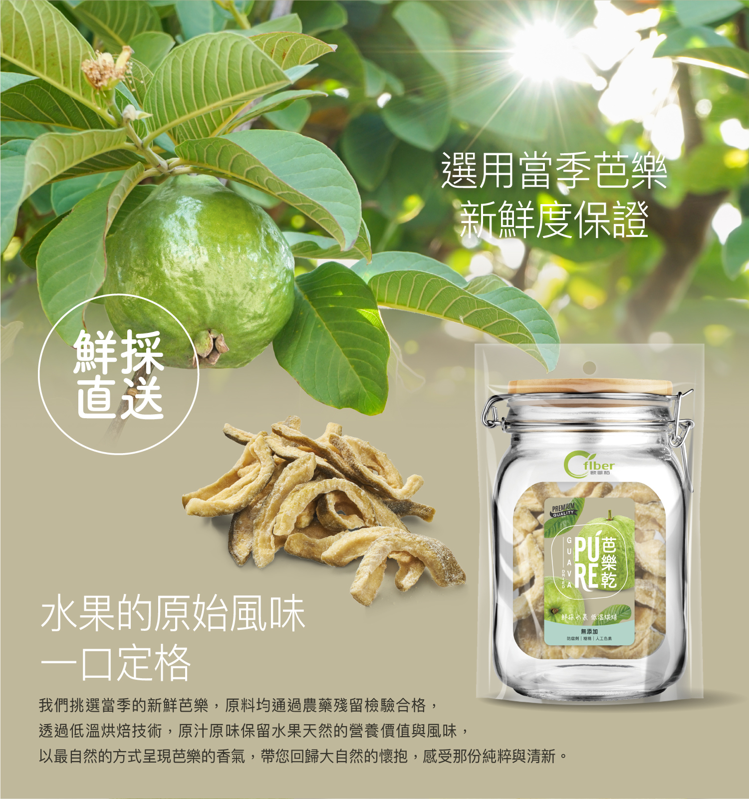歐菲栢的天然芭樂乾,專為追求健康的您精心打造。每一片芭樂乾都選自當季最鮮美的芭樂,無糖製作,完美保留芭樂的原汁原味,帶來純粹的自然甜味。經過低溫乾燥處理,保留了芭樂的營養成分和清新香氣,無任何額外添加,讓您每一口都能享受到最健康的美味。
