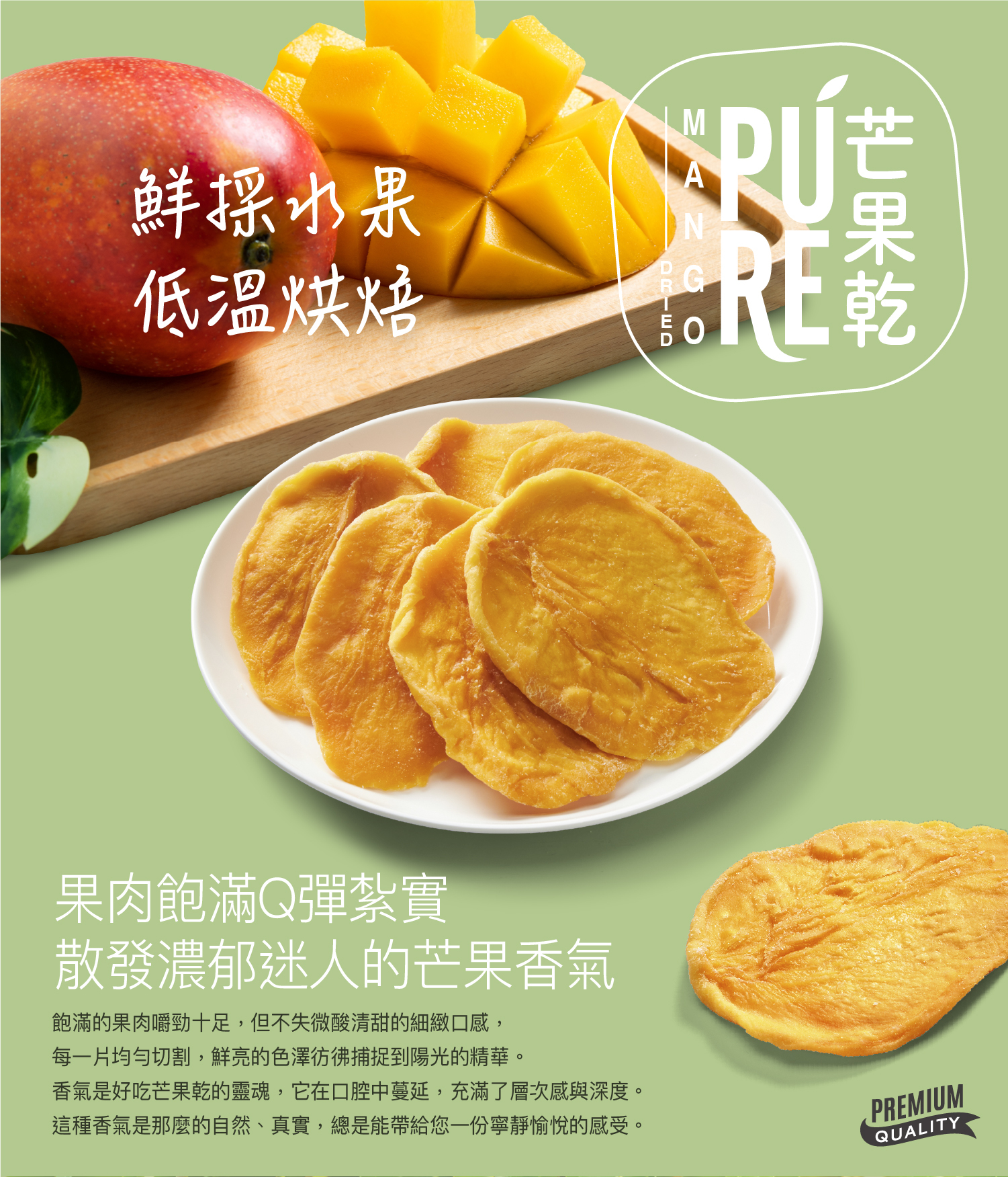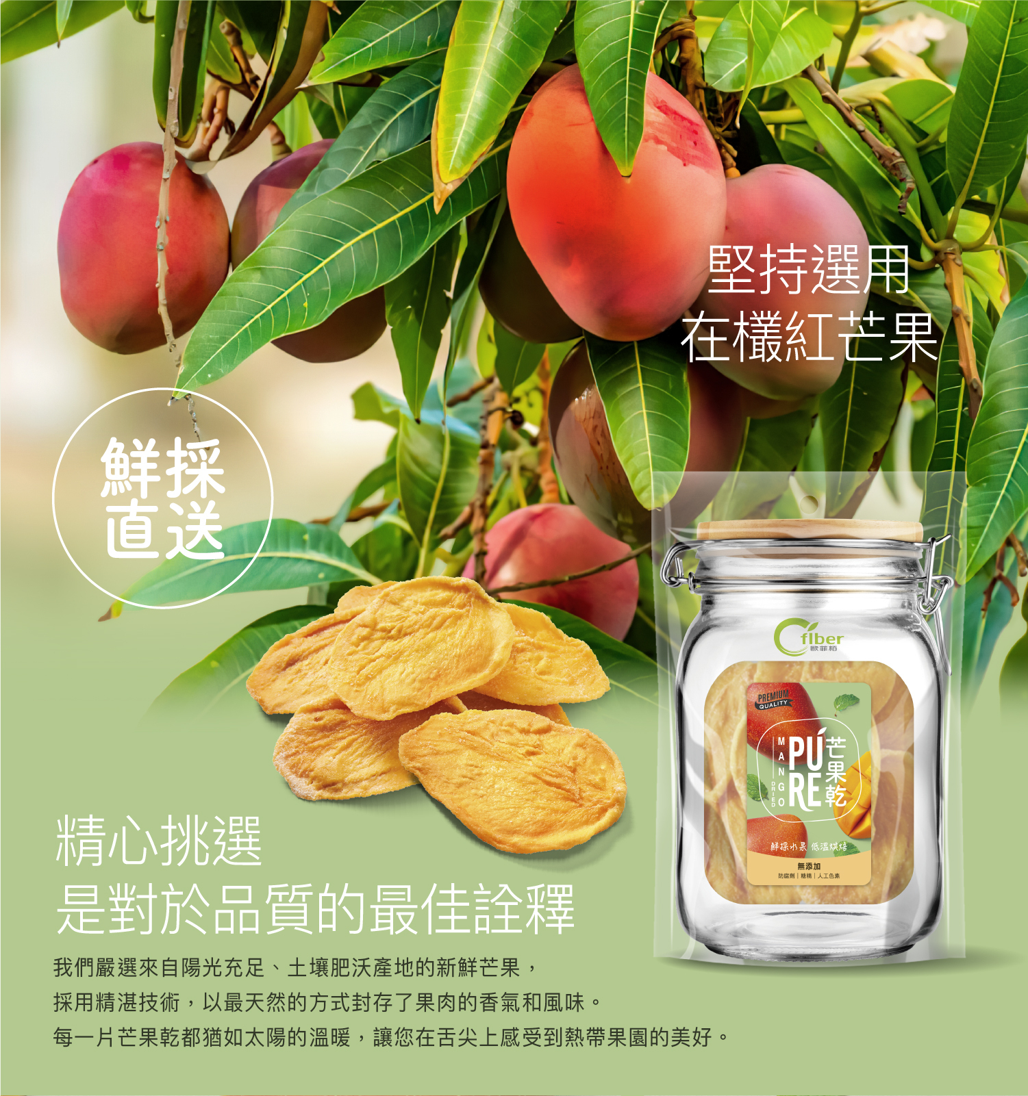 歐菲栢的愛文芒果鮮果乾,選用優質愛文芒果,每片果乾都果肉飽滿、Q彈紮實,散發出濃郁的芒果香氣。無糖精、無添加任何人工成分,我們的愛文芒果乾以其純天然的美味,深受眾多消費者的推薦。無論是當零嘴還是搭配料理,它都是一款值得推薦的健康選擇,讓您隨時品嚐到最自然的芒果風味。