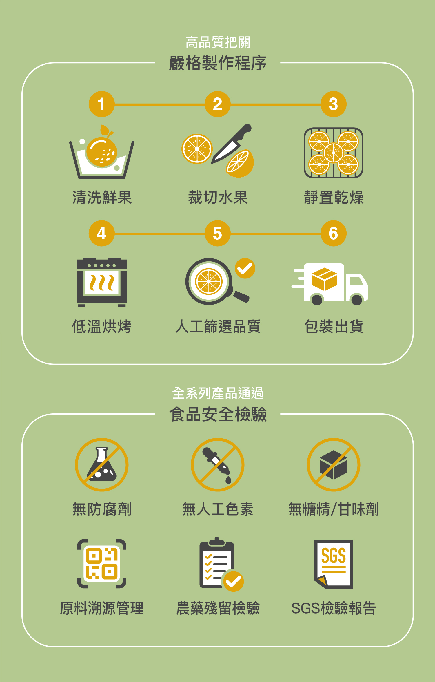 ※本產品在製作前,以清水及食鹽和食品級檸檬酸來清洗,增加鮮果的潔淨度。
