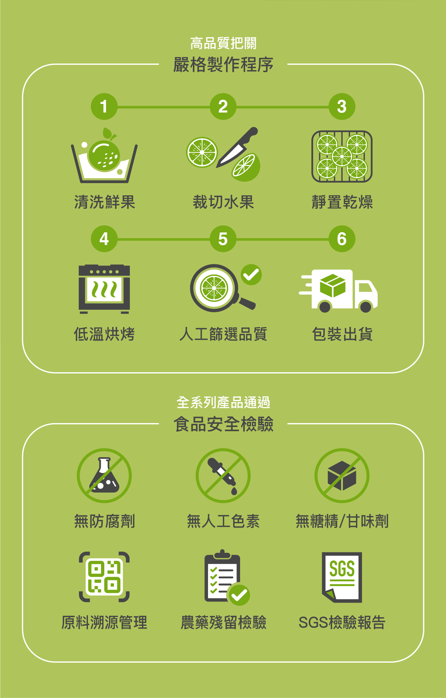 ※本產品在製作前,以清水及食鹽和食品級檸檬酸來清洗,增加鮮果的潔淨度。