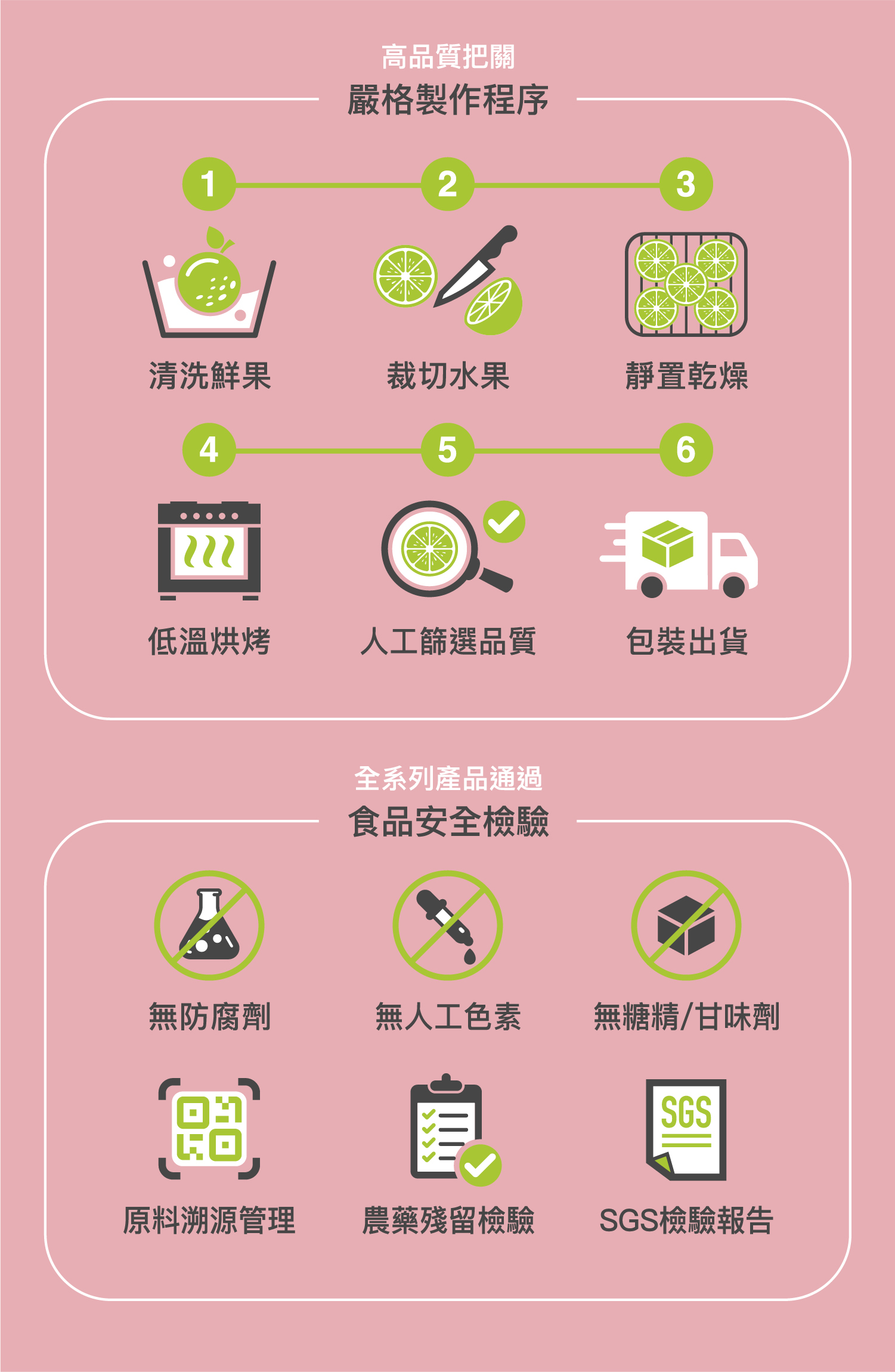 ※本產品在製作前,以清水及食鹽和食品級檸檬酸來清洗,增加鮮果的潔淨度。